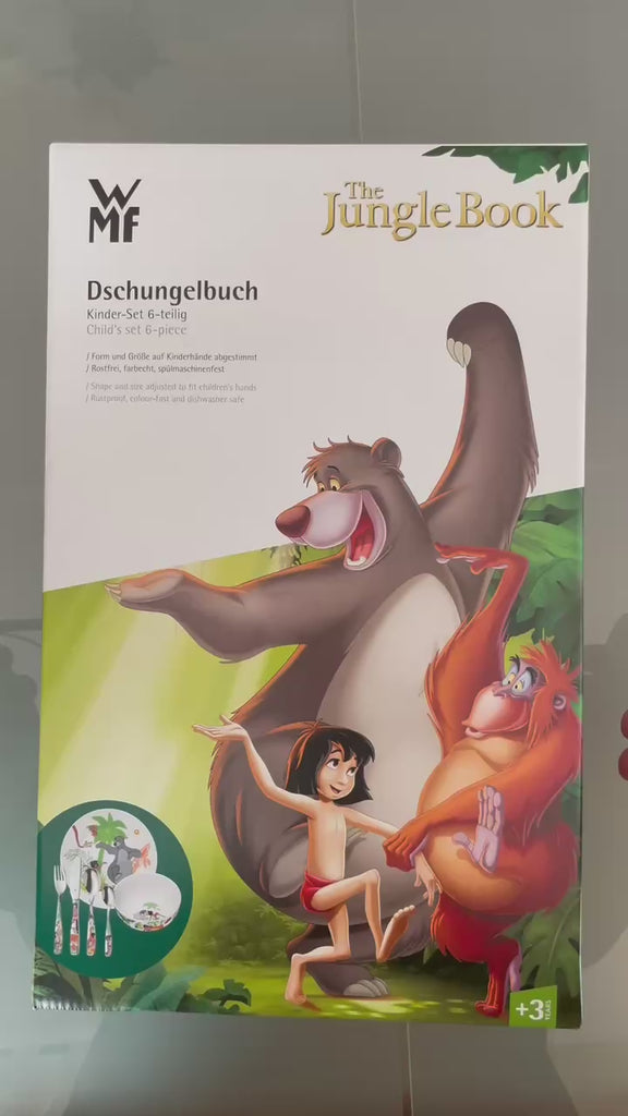- Vajilla Infantil (2 piezas): Plato y cuenco a juego con los mágicos diseños del Libro de la Selva.