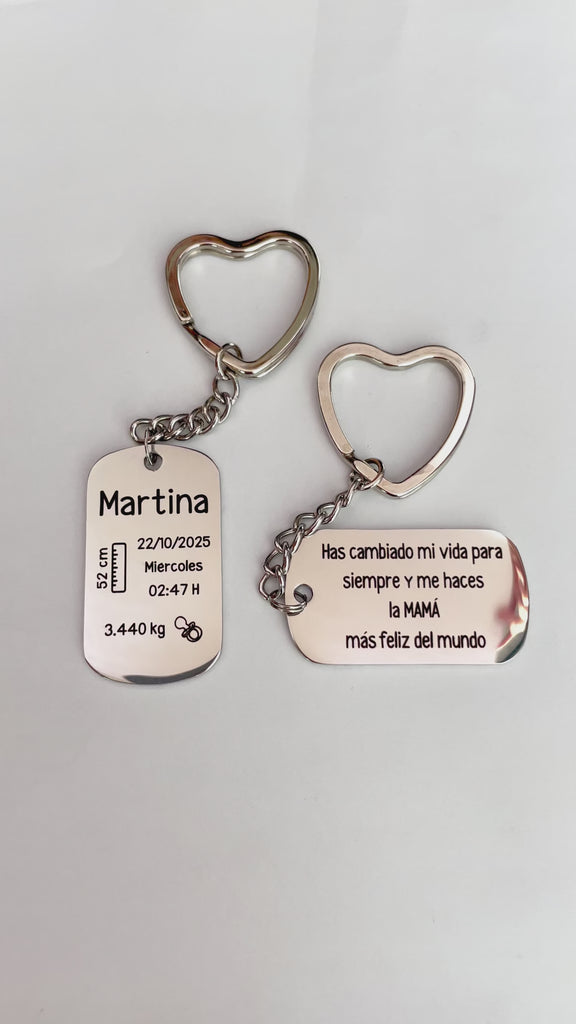 Grabado láser permanente. Diseño y calidad garantizados en cada llavero personalizado para recién nacido.